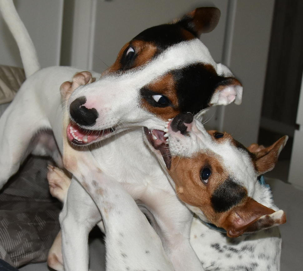 Wikipedia: Bodeguero Andaluz (Mischling) Emilio und Paquito verstehen und ergänzen sich sehr gut ... Die spielen nur :-)